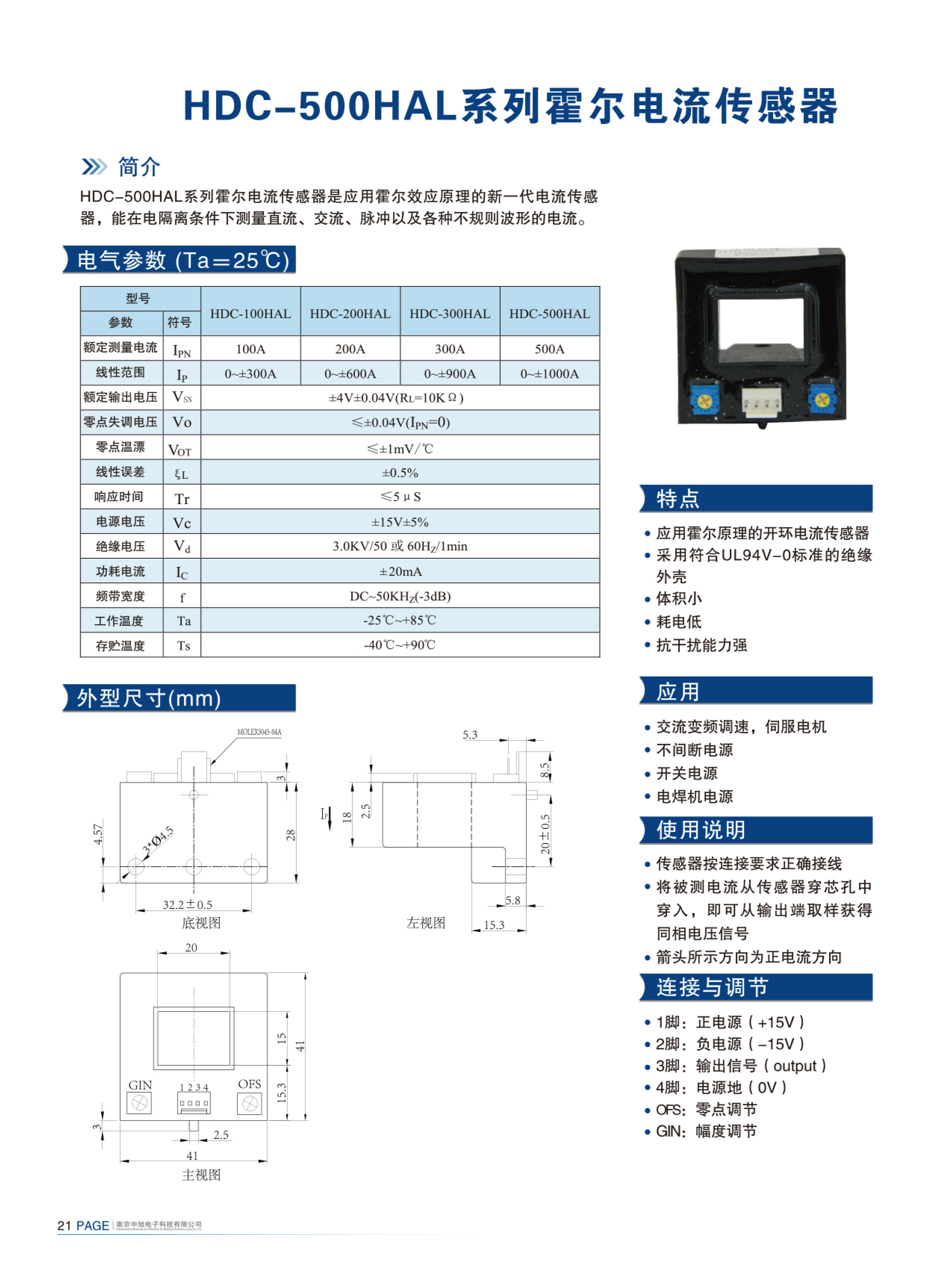 HDC-500HAL系列霍爾電流傳感器是應(yīng)用霍爾效應(yīng)原理的新一代電流傳感器,能在電隔離條件下測量直流、交流、脈沖以及各種不規(guī)則波形的電流。