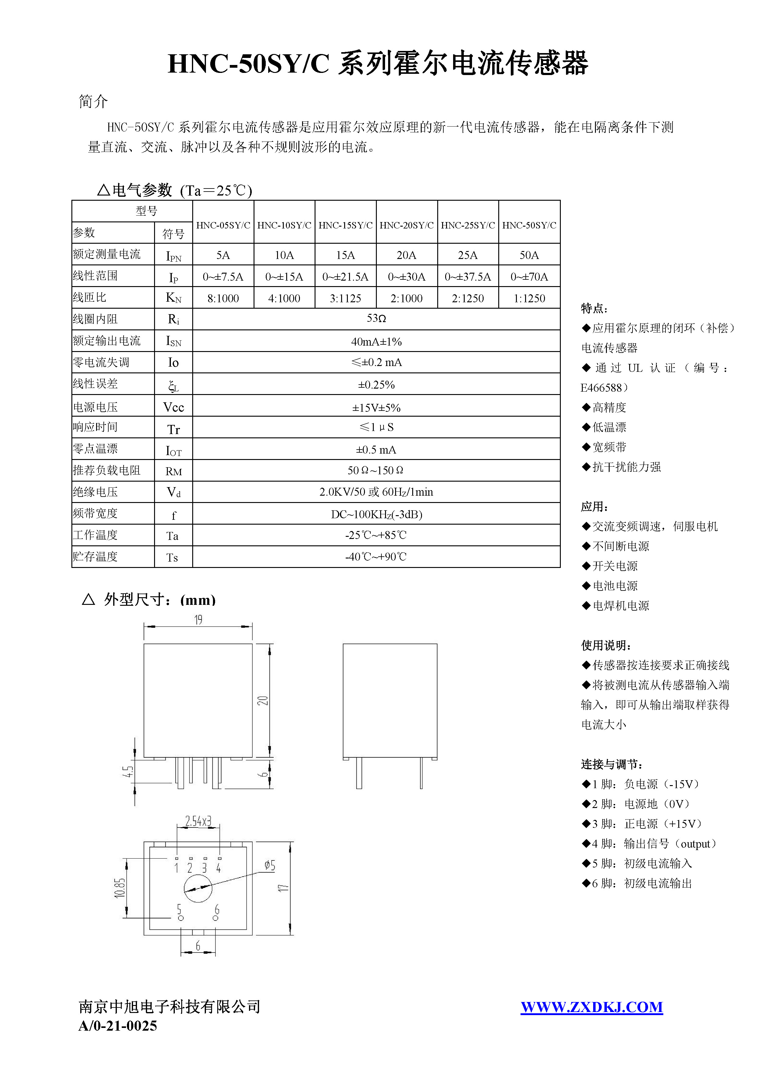 HNC-25SY/C系列霍爾電流傳感器是應(yīng)用霍爾效應(yīng)原理的新一代電流傳感器,能在電隔離條件下測量直流、交流、脈沖以及各種不規(guī)則波形的電流。