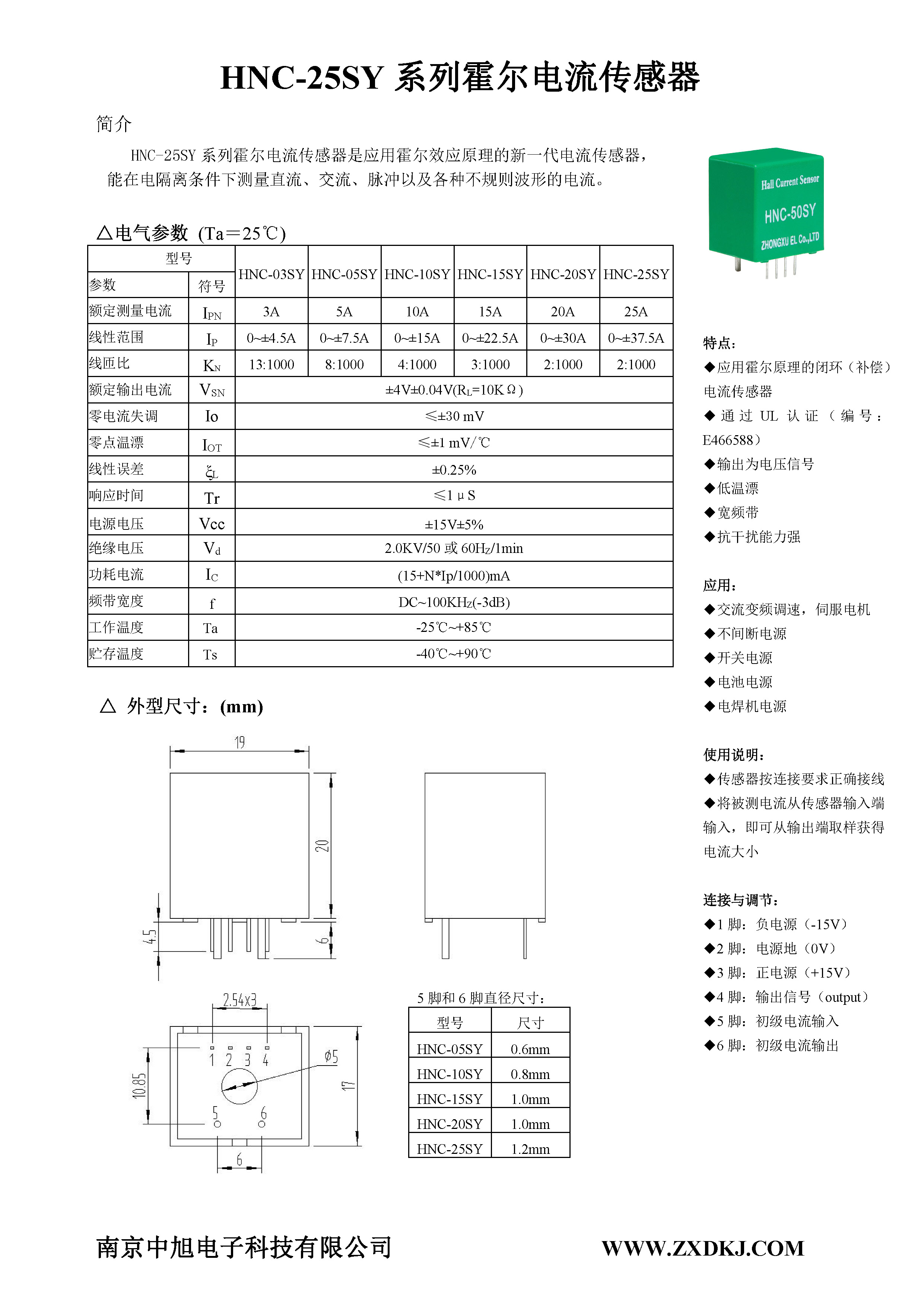 HNC-25SY系列霍爾電流傳感器是應(yīng)用霍爾效應(yīng)原理的新一代電流傳感器,能在電隔離條件下測(cè)量直流、交流、脈沖以及各種不規(guī)則波形的電流。